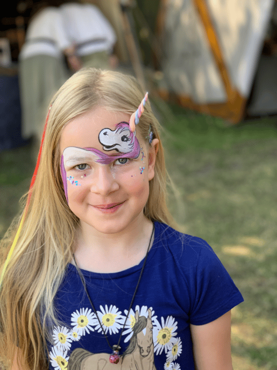 Aus einem saisonal wechselnden Motivangebot können die Kinder sich ihren Favoriten auswählen oder sich ganz der Magie unserer Hände und des Pinsels anvertrauen. Wir schminken immer sehr individuelle, liebevoll-kreative kleine Kunstwerke in die Gesichter und freuen uns dann, wenn beim Blick in den Spiegel, das Leuchten in die Augen der Kinder (und Eltern) tritt.